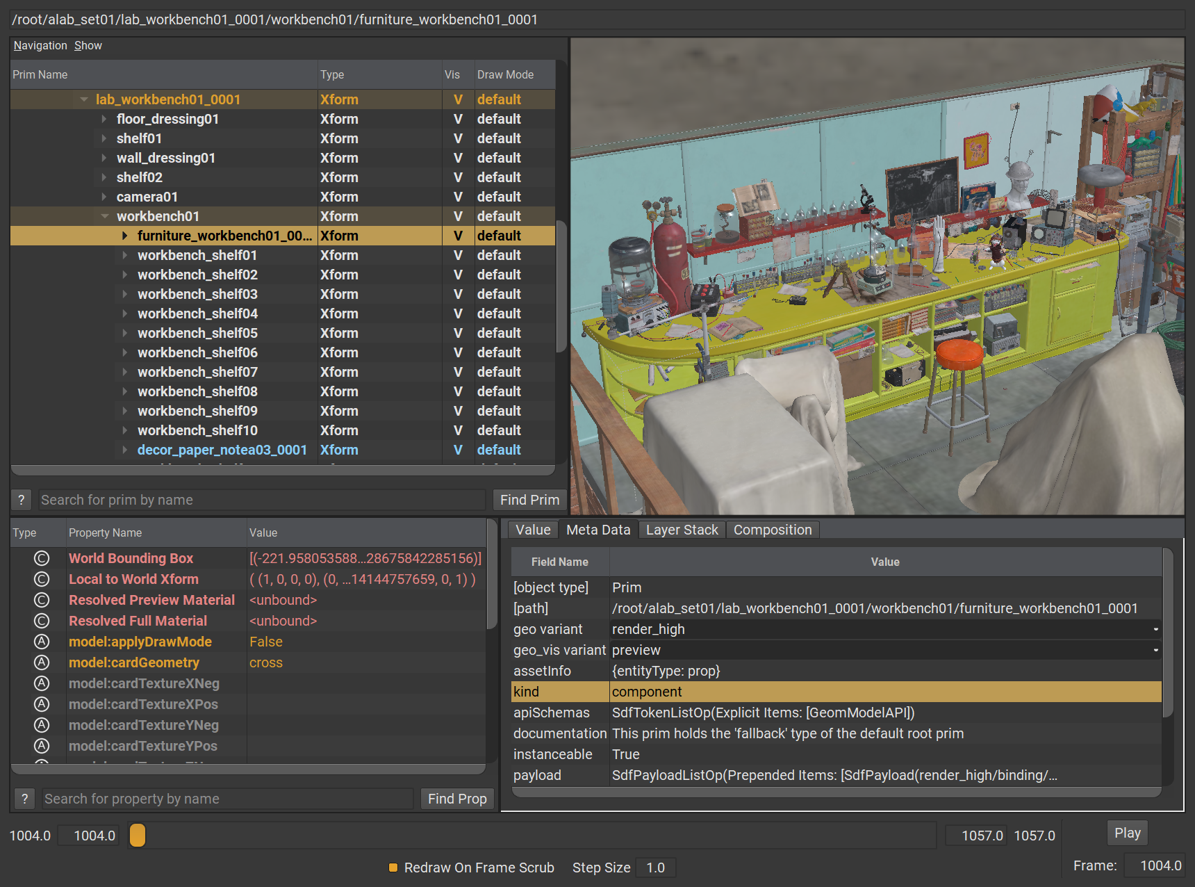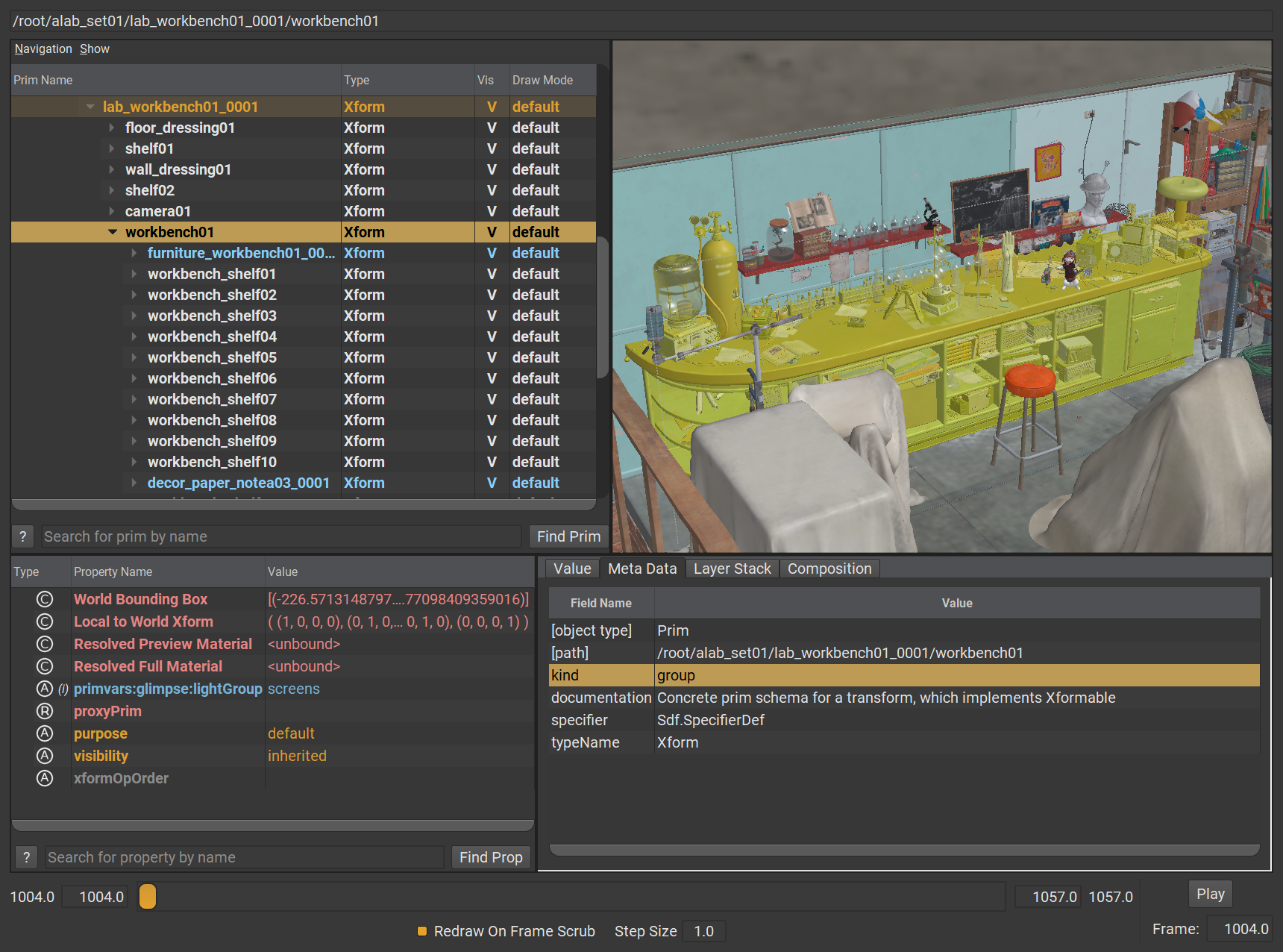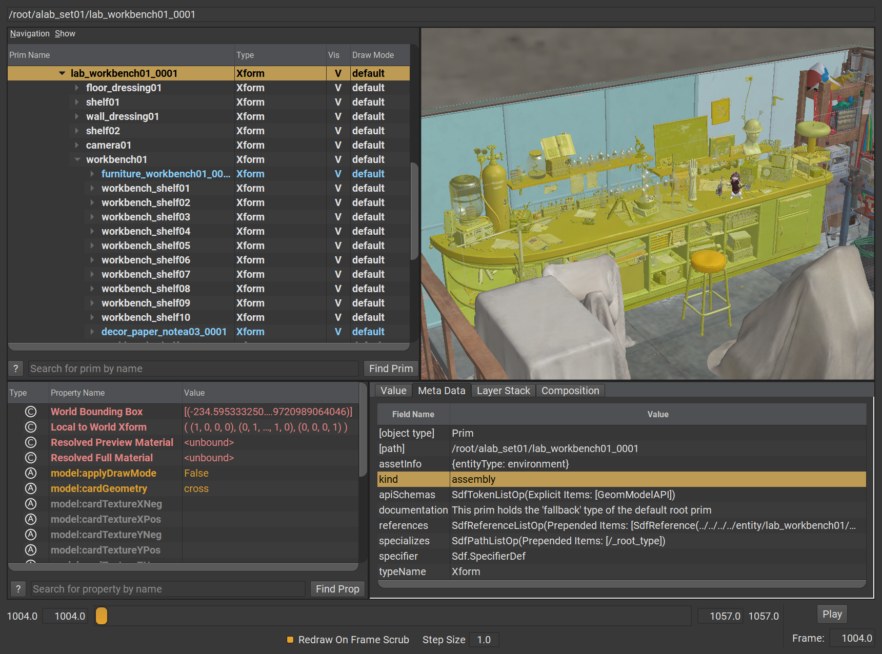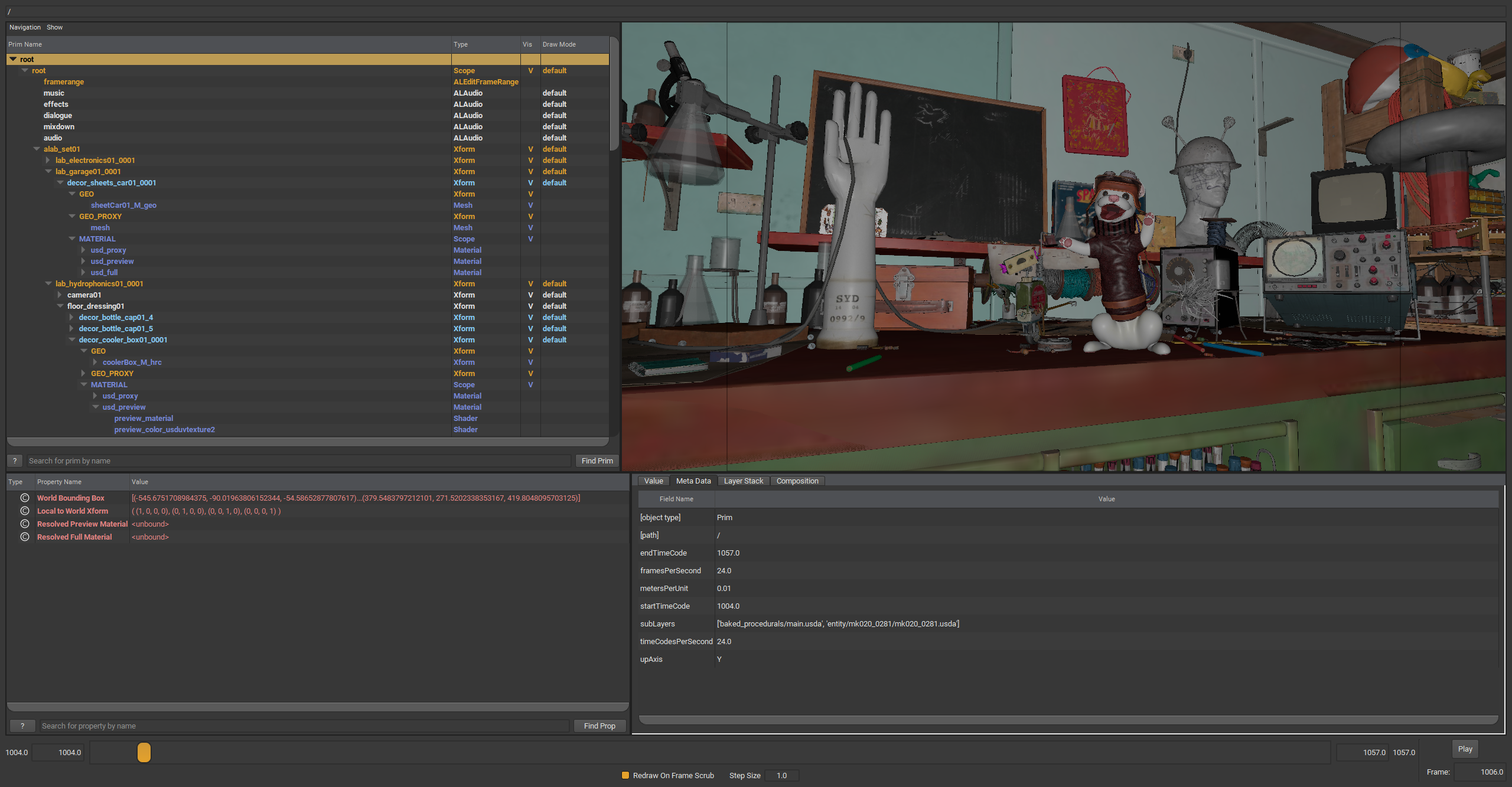 Animal Logic ALab USD 場景,於 USDView 中的畫面