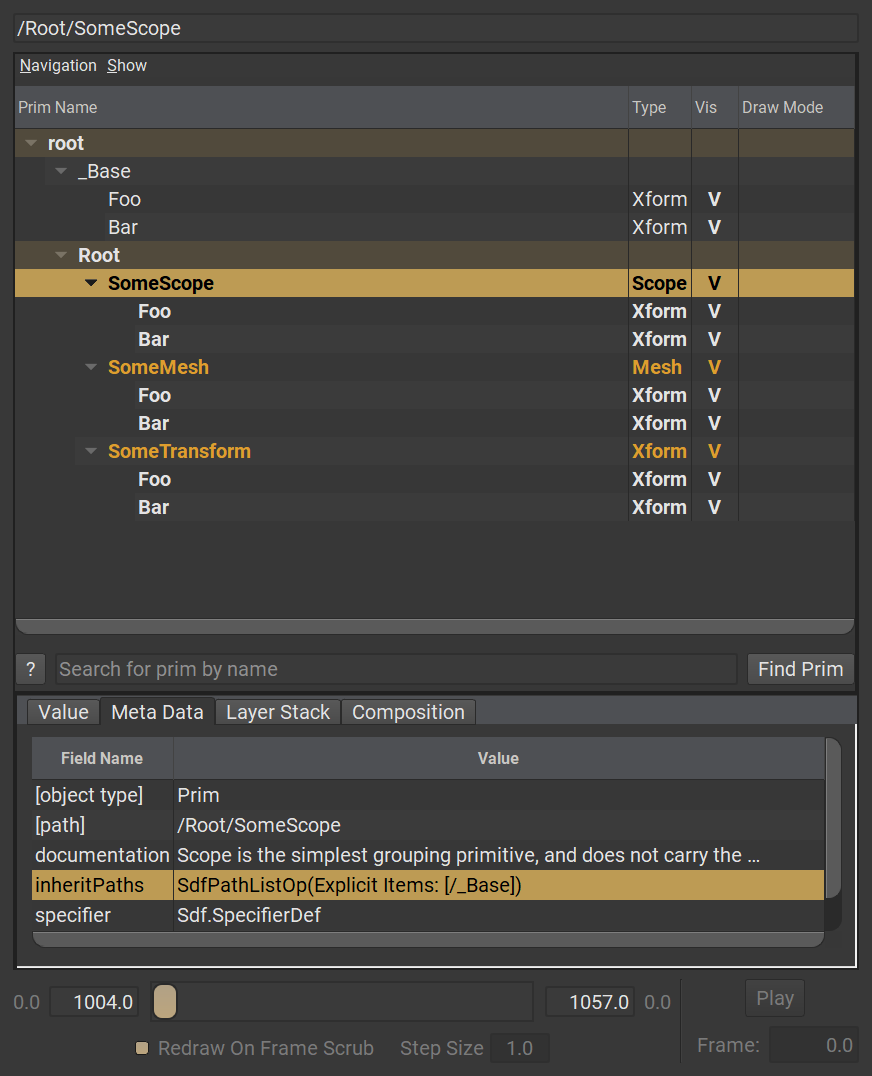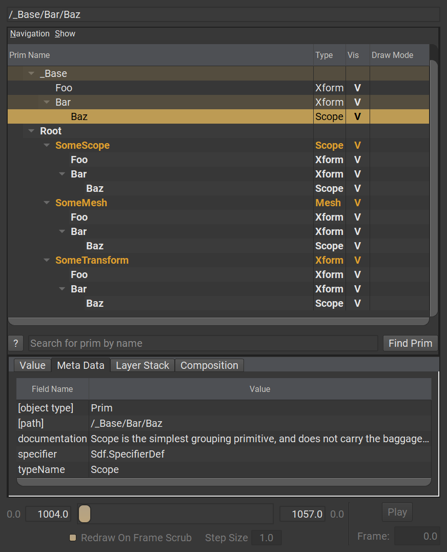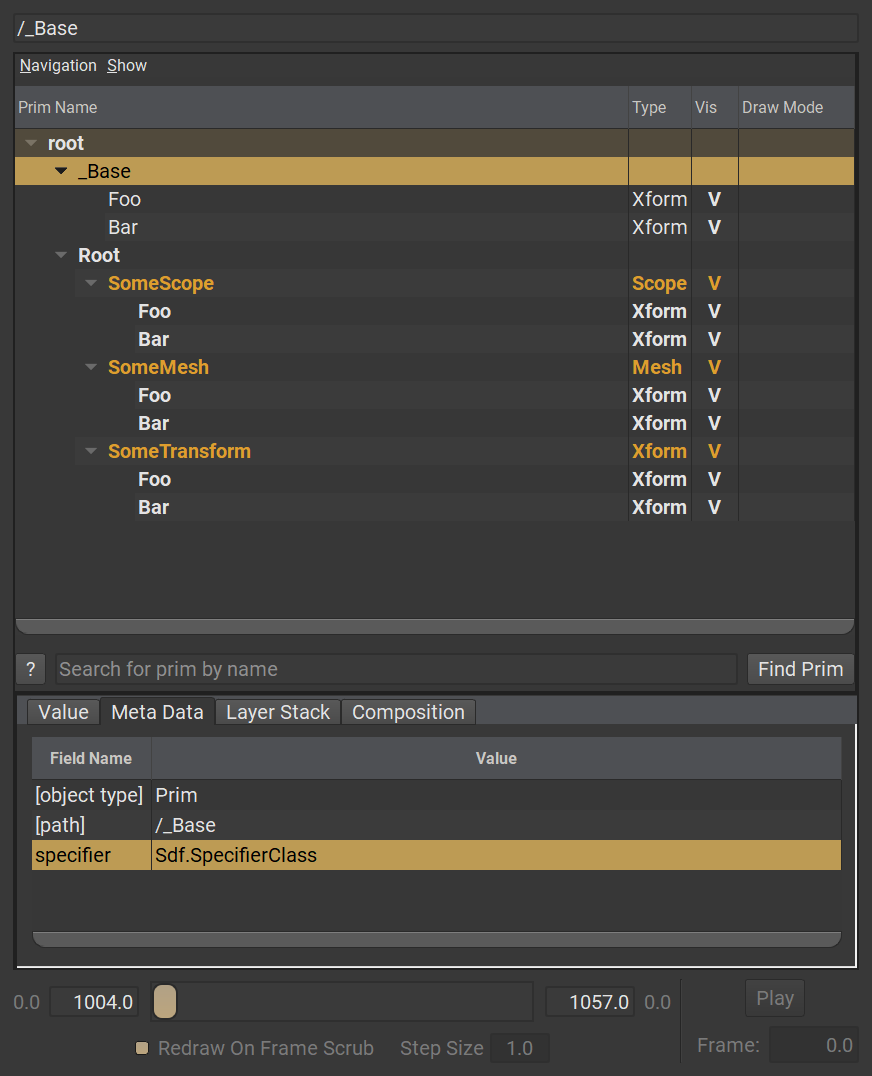 眼尖的讀者可能會注意到,Prim 可以擁有特定的 type。例如 Xform、Mesh、Scope 以及 Material 都是特定的 Prim type。