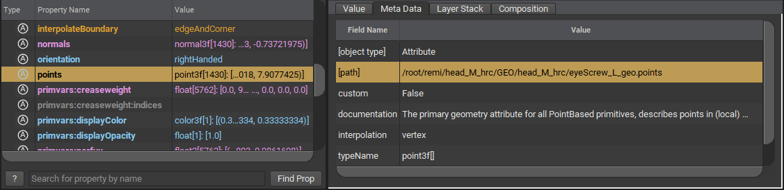 位於路徑 /Sphere/Mesh 的 prim 之所以能夠連接材質,正是因為其本身的 apiSchemas 中繼資料欄位中已被掛載套用了 MaterialBindingAPI。 (順帶一提,apiSchemas 這筆資料屬性也支援 清單編輯 List-Editable 機制,這意味著使用者有權限能夠自行編輯或覆寫指定 prim 所掛載的 API Schemas)。