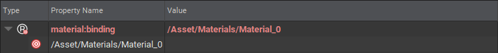 搞明白上述機制後,我們就可以順利地針對這個 prim 所擴充附帶名為 material:binding 的屬性進行了編輯修改。在這裡有一個需要特別注意的特點:您會發現這筆屬性身上註記了一個名為 custom (自訂) 的中繼資料標籤(metadatum)。這個標籤是用來明確宣告該屬性存在且合法歸屬於某個 schema 綱要的管轄之內。整體來說,如果系統發現某個屬性上的 custom 遭人為手動寫死為 True,那麼該屬性在系統中通常只會被判定為是不具合法綱要效力的外部孤立擴充屬性(out-of-schema)。